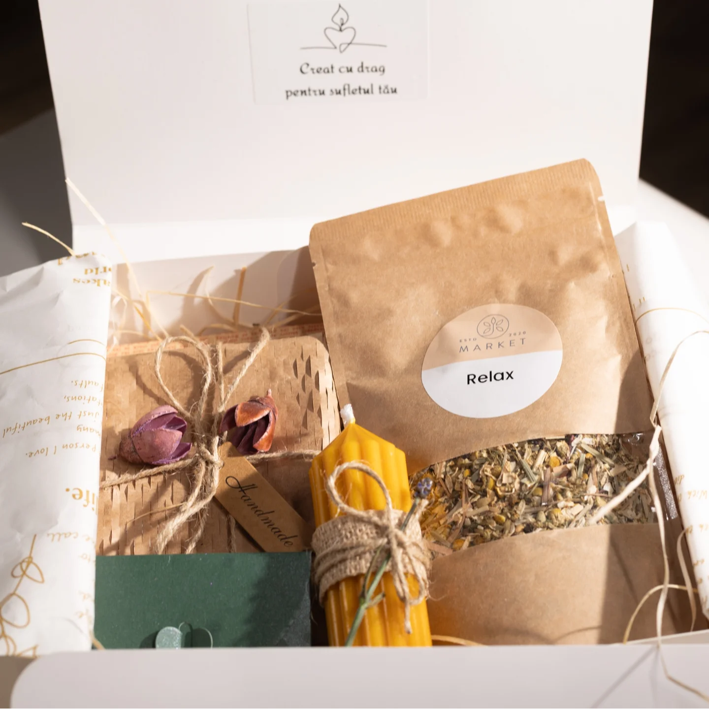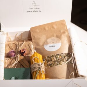 Include lumânări artizanale, o carte aleasă cu grijă, ceai aromat și un mesaj scris de tine. Ambalat cu grijă într-o cutie de colecție, gata de oferit cu drag.