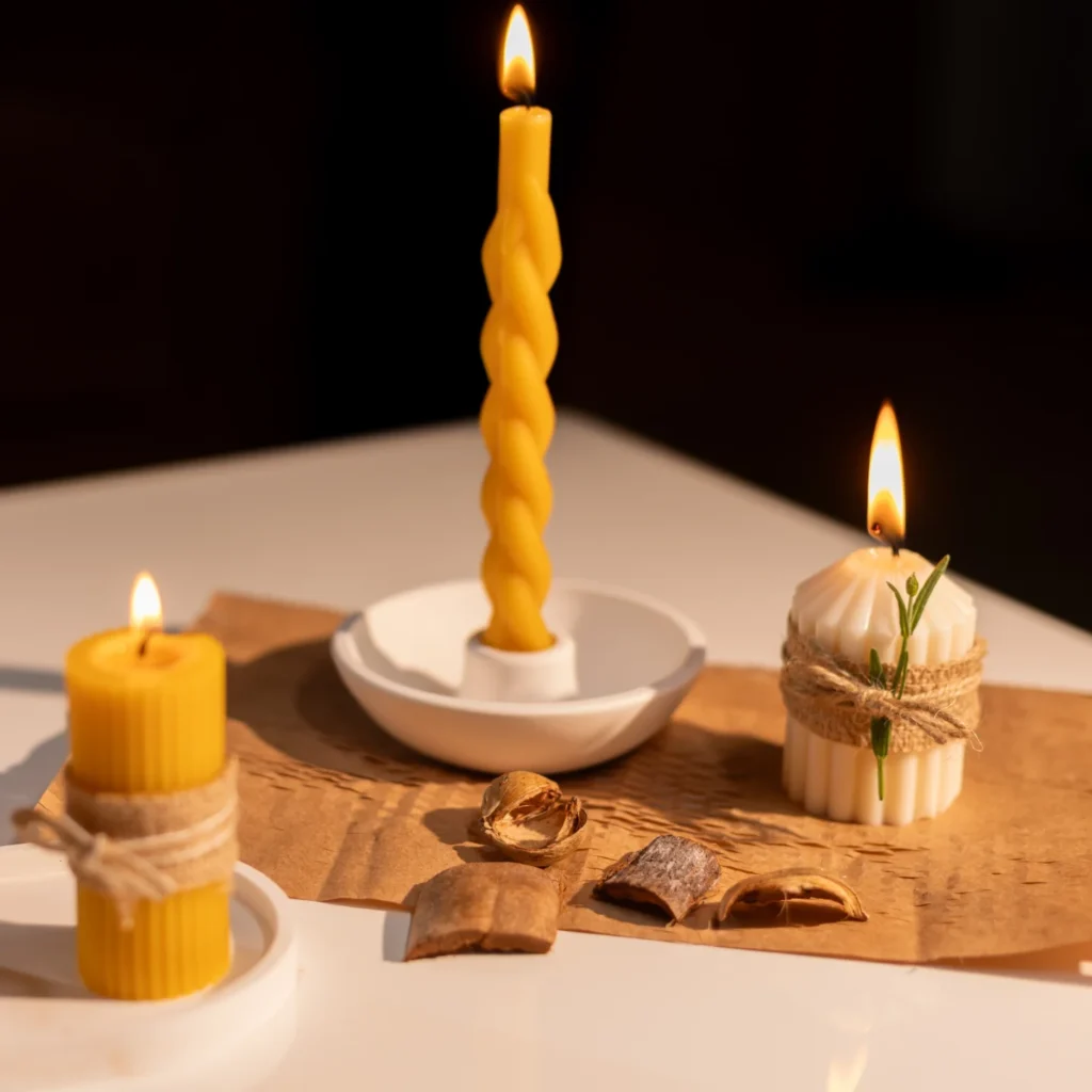 Fiecare formă, textură și culoare e rezultatul muncii manuale, făcută în atelierul unei mame care transformă ceara naturală în povești cu lumină.