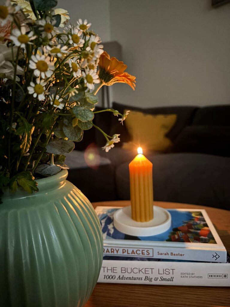 Lumânările din ceară de albine ard curat, fără fum sau chimicale – perfecte pentru seri relaxante.