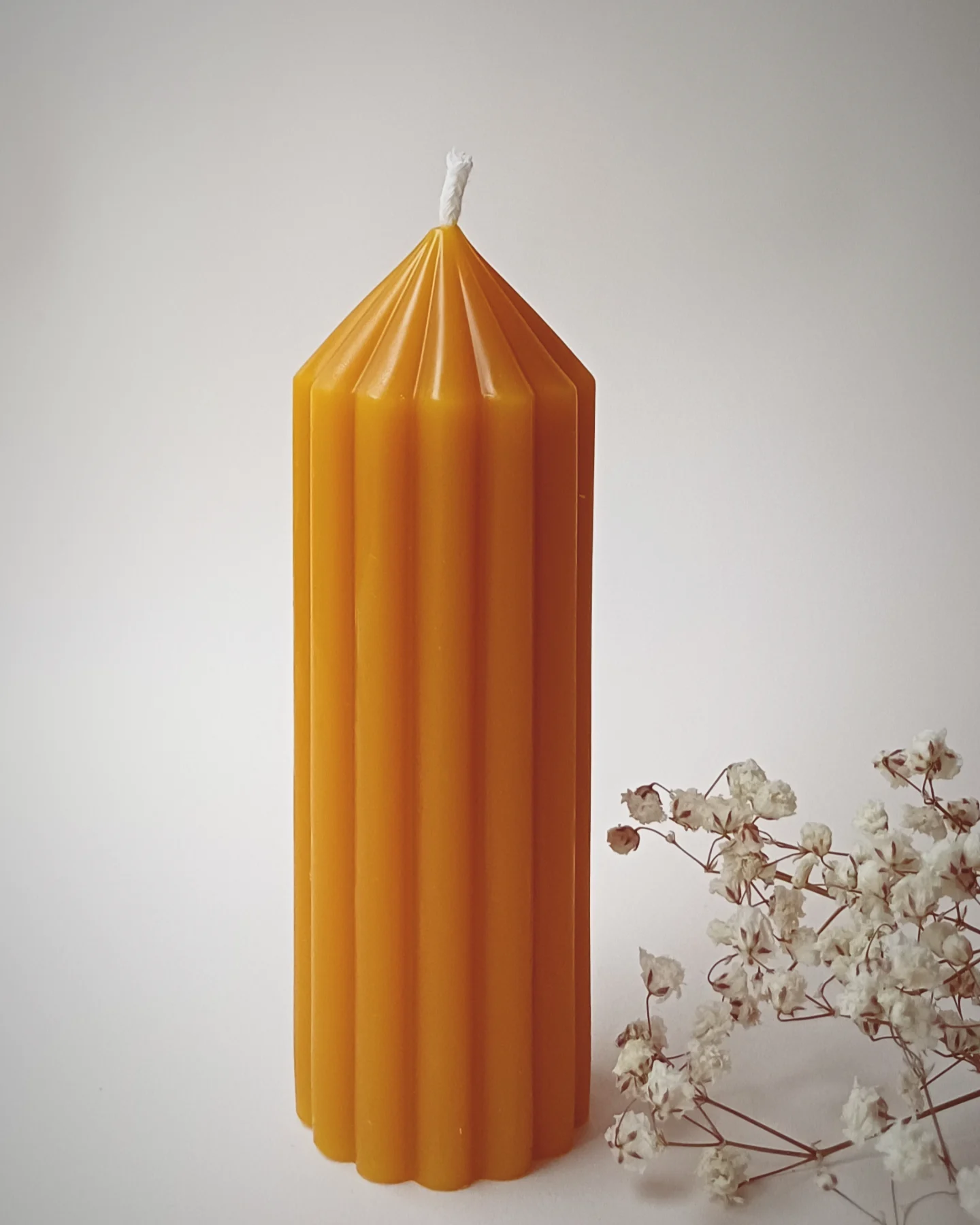 Realizată 100% din ceară naturală de albine, arde lent și curat, umplând încăperea cu o stare de bine subtilă.